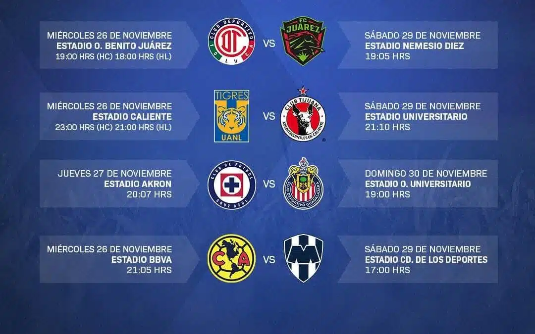 Ciudad de México, 24 de noviembre 2025 – La espera ha terminado. Tras un intenso Play-In donde FC Juárez y Xolos de Tijuana lograron los últimos boletos, la Liga MX ha confirmado los horarios para los Cuartos de Final del Apertura 2025. Se viene una semana de fútbol de alto voltaje con duelos que prometen paralizar al país, incluyendo un Cruz Azul vs. Chivas que se roba los reflectores.