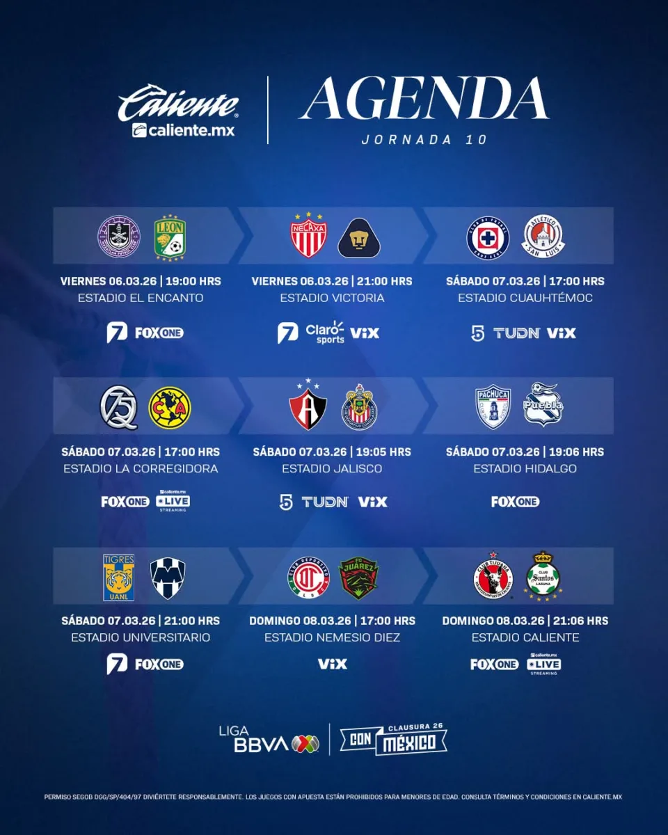 ¡La emoción está al rojo vivo! La Jornada 10 del Clausura 2026 ha llegado y promete ser el punto de inflexión del torneo. Con el liderato en juego y una “cartelera de lujo” que incluye los dos clásicos más pasionales del país, la Liga MX se prepara para un fin de semana que paralizará a las aficiones de Guadalajara y Monterrey.